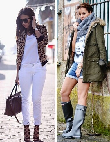 Косуха. Эта куртка отличается косой застежкой и вопреки распространенному стереотипу, может быть не только из кожи, но и из текстиля. Смелой девушке ее можно носить с кожаными брюками или леггинсами, которые можно дополнить длинной футболкой или туникой, на каждый день носите косуху с разнообразными моделями джинсов и обычных брюк. Обувь зависит от вашего конечного ансамбля. Для более гламурного лука выбирайте ботильоны или закрытые туфли на каблуке, облегающие сапоги, для стиля кэжуал подойдут балетки, ботинки без каблука, для стиля милитари – армейские ботинки.