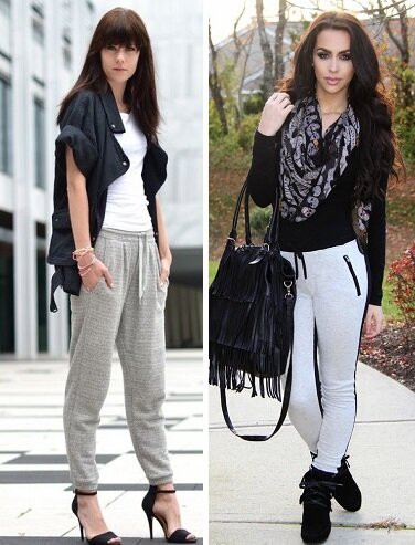 Подобрать подходящую «пару» к этим брючкам совсем не так просто, как кажется на первый взгляд. Из-за того, что они пришли к нам из спортивного стиля, стоит соблюдать осторожность при подборе одежды и всегда делать скидку на то, что со спортивным стилем мало что еще сочетается.